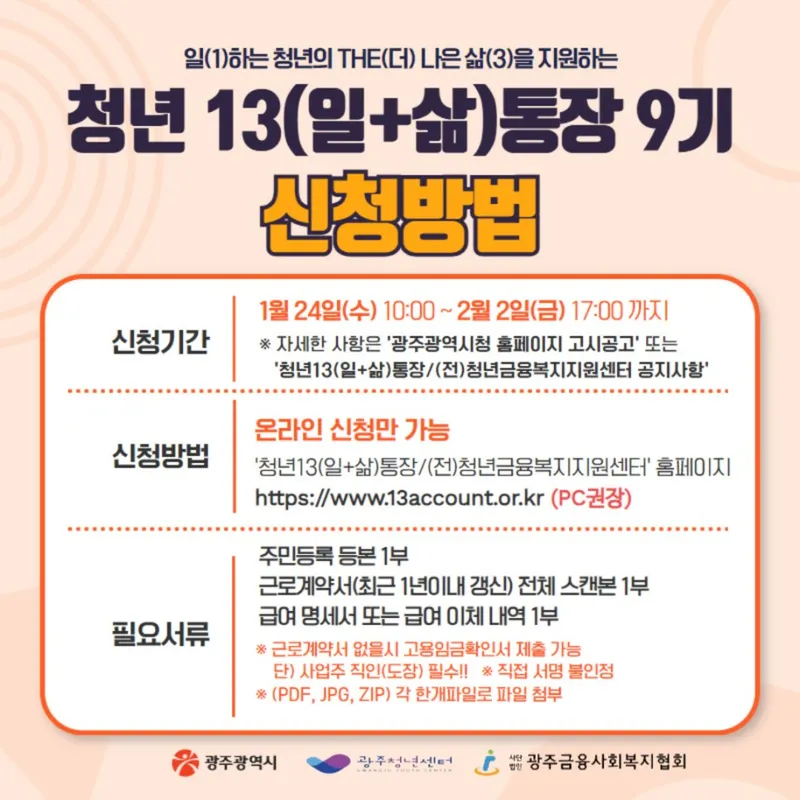 [ 청년 13(일+삶)통장 9기 신청방법 ]
