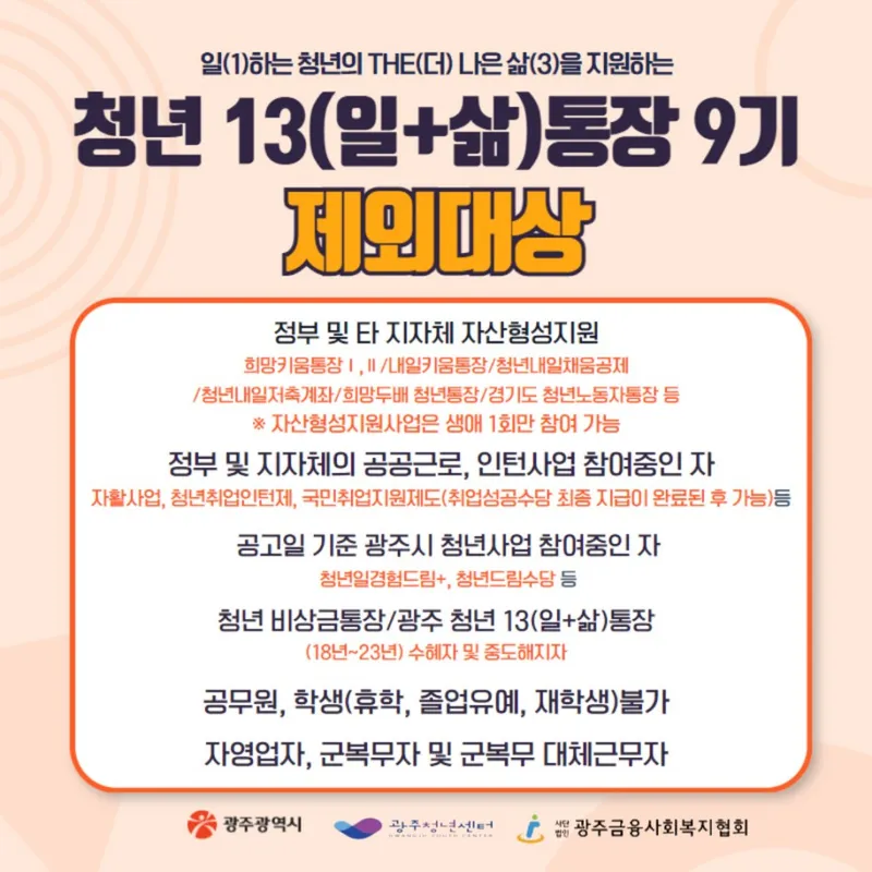 [ 청년 13(일+삶)통장 9기 제외대상 ]