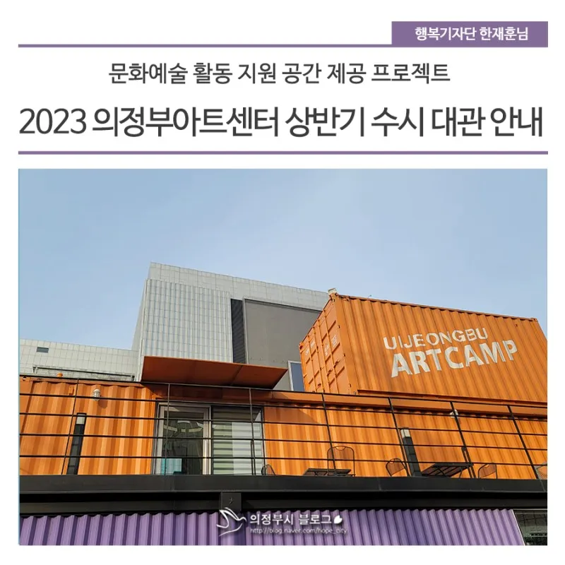 안녕하세요. 의정부시민여러분. 의정부문화재단에서는 문화예술 진흥과 시민의 문화예술 활동을 지원할 수 있는 공간 제공 프로젝트 중에 하나로 의정부아트캠프 상반기 수시 대관신청을 공고했습니다. 2월부터 6월중 총 51일간 신청이 가능하고요. 단체는 물론 개인도 신청이 가능합니다. 이에 대한 자세한 내용을 소개해 드리고자 합니다.