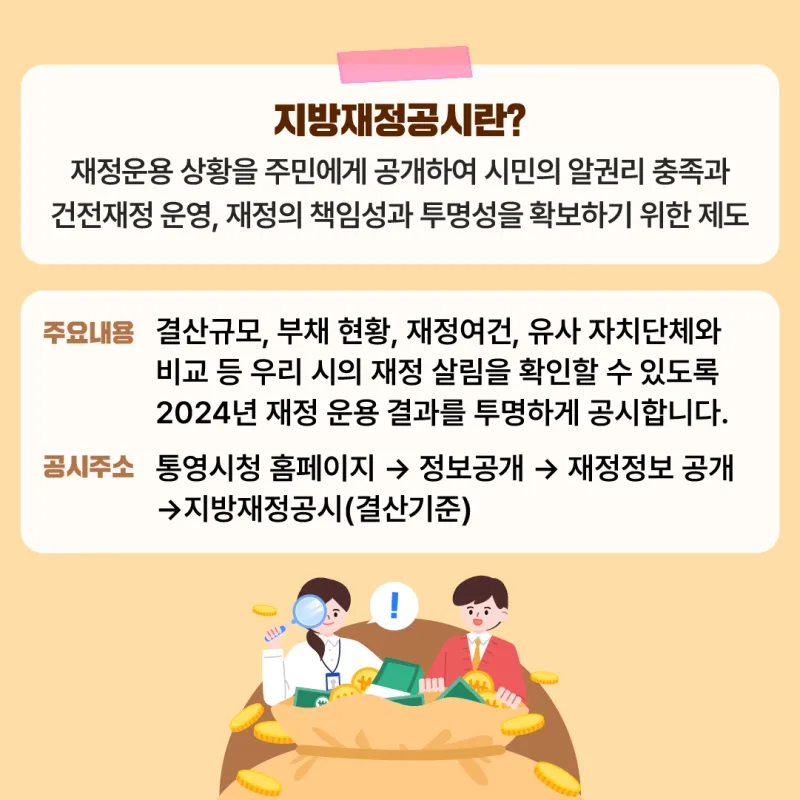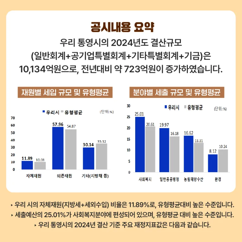 2024회계연도 결산기준 2025년 통영시 재정공시 안내