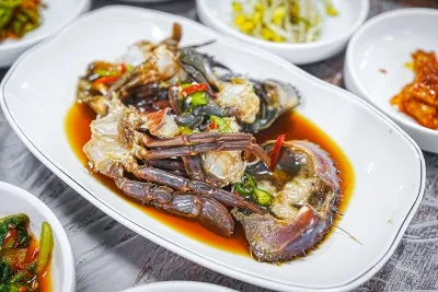 태안 시내를 방문하신다면 바로 이곳을 방문하셔야 하는데요. 바로 현지인이 추천하는 태안 해물 요리 맛집 중 태안 시내에 위치한 '유명해물나라'입니다. 유명해물나라는 돌게장과 꽃게장 같은 다양한 장을 포장 판매도 하고 있어 끼니도 해결하고 기념 특산물도 구입할 수 있는 곳입니다. 간판에서 보이는 꽃게 로고답게 꽃게 요리로 유명한 태안 맛집이라 그중에서도 태안의 토속음식 게국지와 게장 세트 메뉴를 주문해 보았습니다.