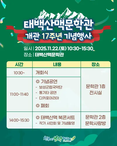 [보성소식] 태백산맥문학관 개관 17주년 기념행사 안내