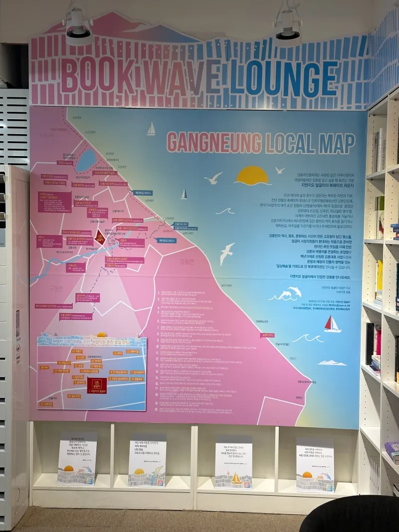 강릉 서점이니만큼 강릉의 로컬을 담은 공간도 끝 쪽으로 마련되어 있었네요! 강릉시에 대한 책들을 찾는다면 꼭 가볼 만한 곳이지 싶습니다.