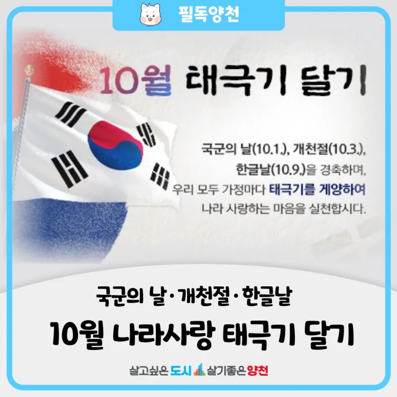 (국군의 날/개천절/한글날) 10월 나라사랑 태극기 달기