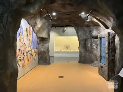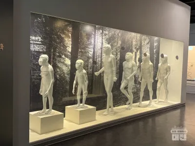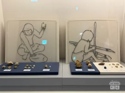 먼저 구석기 문화관을 관람했습니다. 이곳은 인류의 진화 과정과 함께 구석기 문화가 어떻게 발전해왔는지를 소개하며, 다양한 구석기 유물을 직접 살펴볼 수 있는 공간입니다. 구석기 시대에는 한곳에 머무르지 않고 동굴을 이용하거나 텐트 형태의 집을 짓고 살았습니다. 이곳에는 동굴을 재현한 모형이 마련되어 있고, 동굴 안에서는 직접 구석기인이 되어 도구를 만드는 게임을 할 수 있습니다. 특히 대전 지역의 구석기 유적지에서 출토된 찍개, 밀개 등의 유물도 전시되어 있는데요, 이러한 도구들은 주로 사냥이나 식량 채집 등 생존을 위한 활동에 사용된 것으로, 구석기 시대의 생활을 생생하게 확인할 수 있습니다.