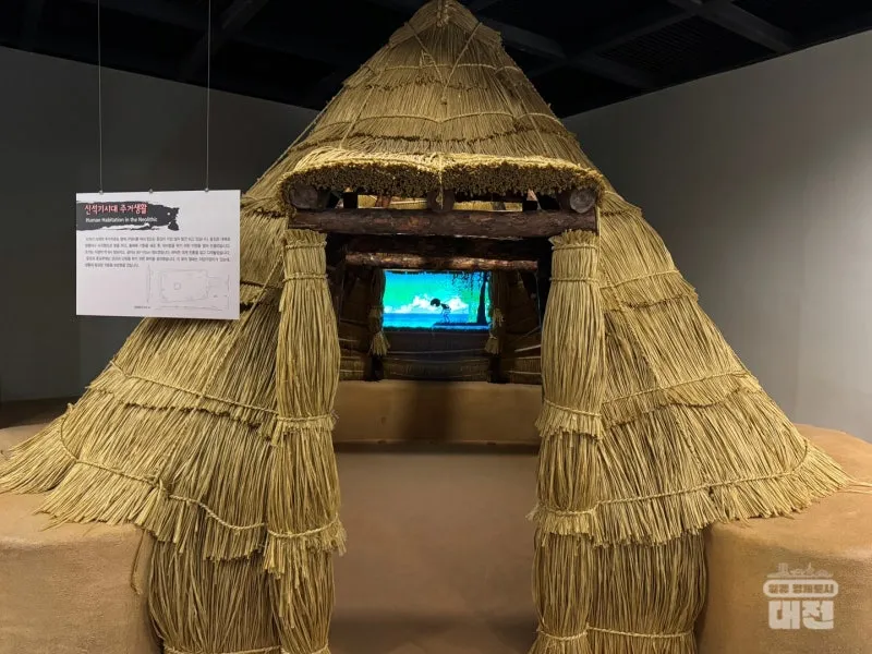 신석기 시대의 대표적인 주거 형태인 움집도 마련되어 있습니다. 땅을 파서 만든 형태로, 비바람을 막기 위해 이엉을 덮어 지붕을 만든 구조입니다. 움집 안에는 신석기인의 생활을 애니메이션으로 재현한 영상도 상영되고 있어, 아이들이 보다 쉽고 흥미롭게 역사와 문화를 이해할 수 있습니다.