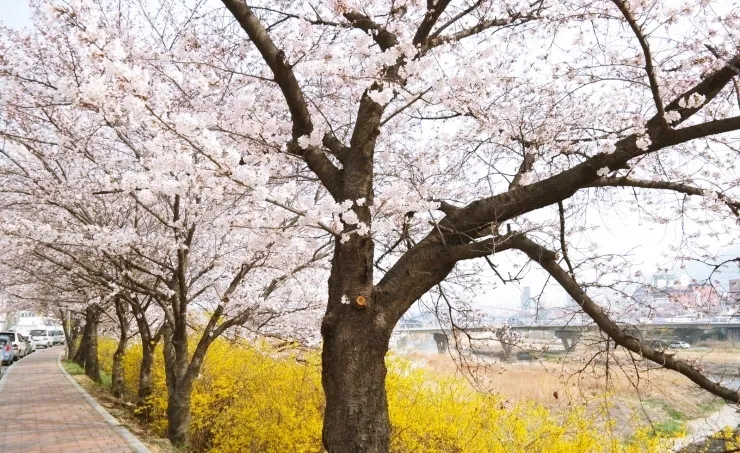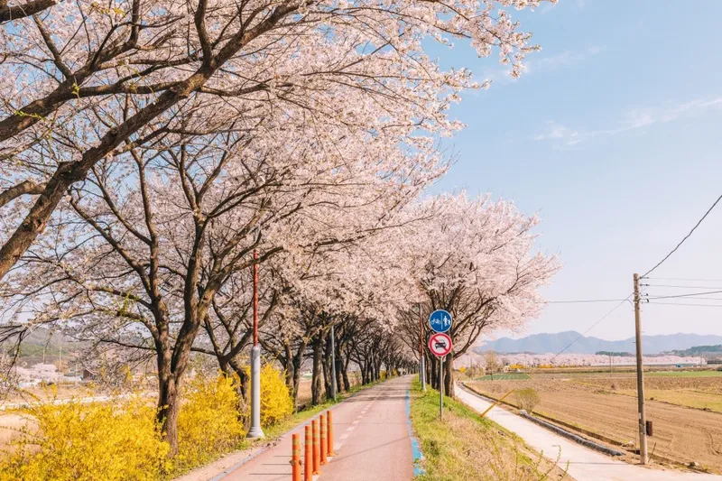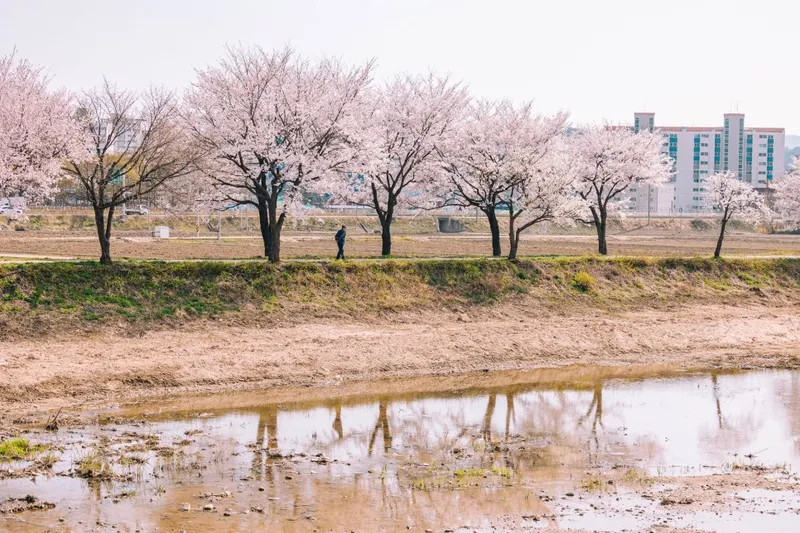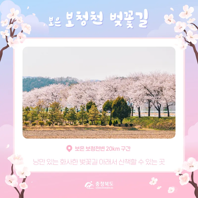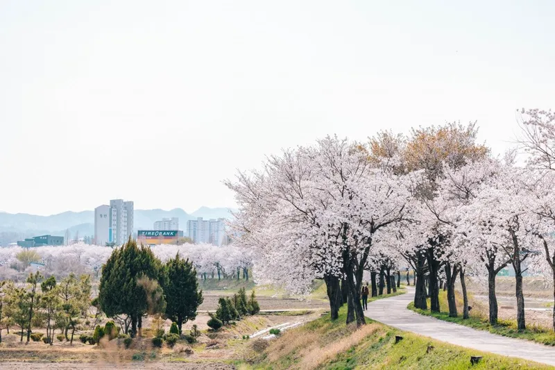 보청천을 따라 4,500여 그루의 벚나무가 줄지어 있어