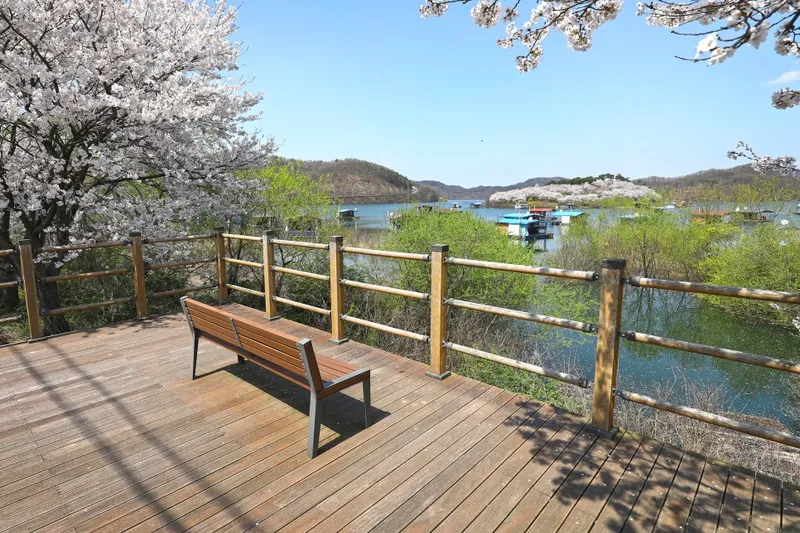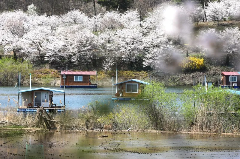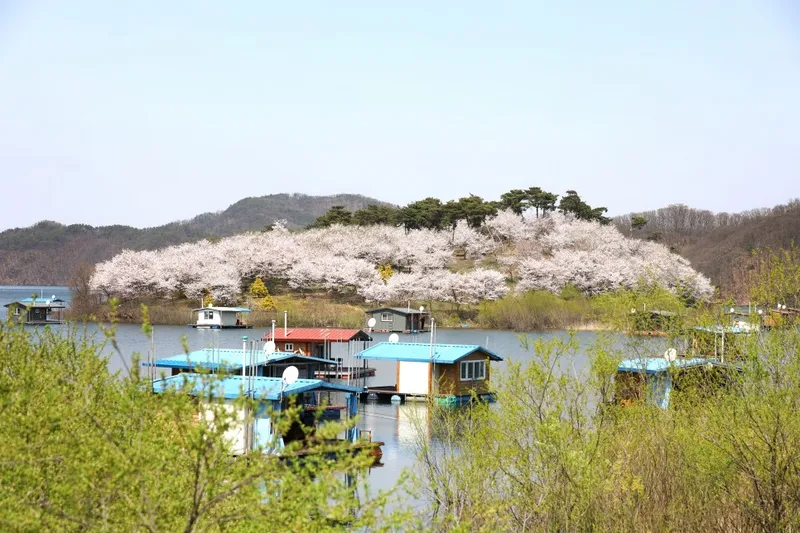세 번째는 호수 위로 둥실 떠 있는 벚꽃 섬이