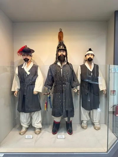 1전시실은 전쟁과 정보가 기록된 곳이예요. 우리 수군들이 어떤 배를 타고 어떻게 생활했는지 어떤 무기들로 전쟁에 참여했는지를 엿볼 수 있어요.