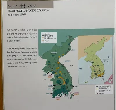 임진왜란 중요 해전도를 지도에 보기 좋게 표시해 놓아서 흐름에 따라서 볼 수 있었어요. 임진왜란이 얼마나 큰 전투였는지 실감할 수 있을 것 같네요.