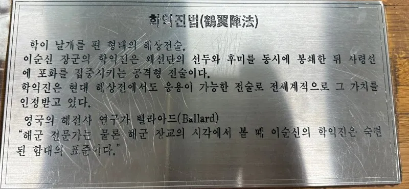 이순신 장군을 이야기할 때 빼놓을 수 없는 학익진법도 보았고요.