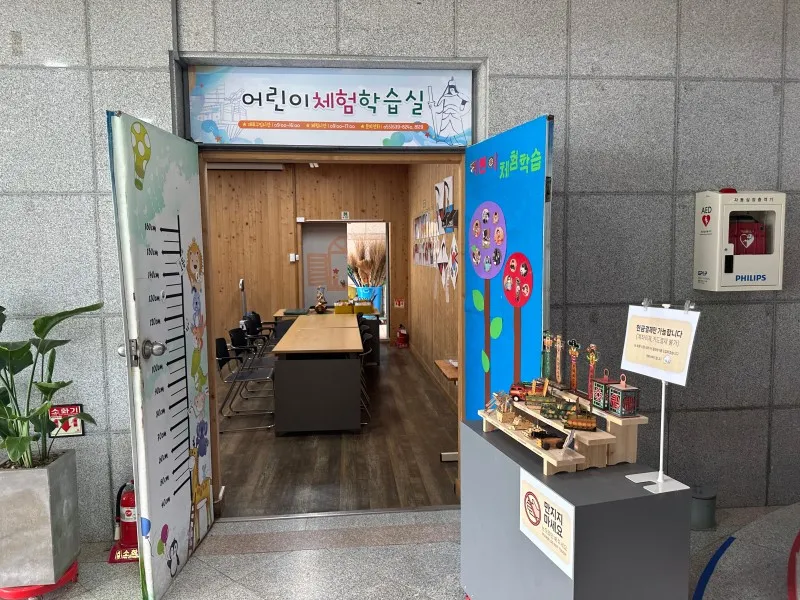 1층은 어린이 체험관과 사무실이 있고, 전시실은 2층에 1전시실과 2전시실으로 나뉘어있어요.