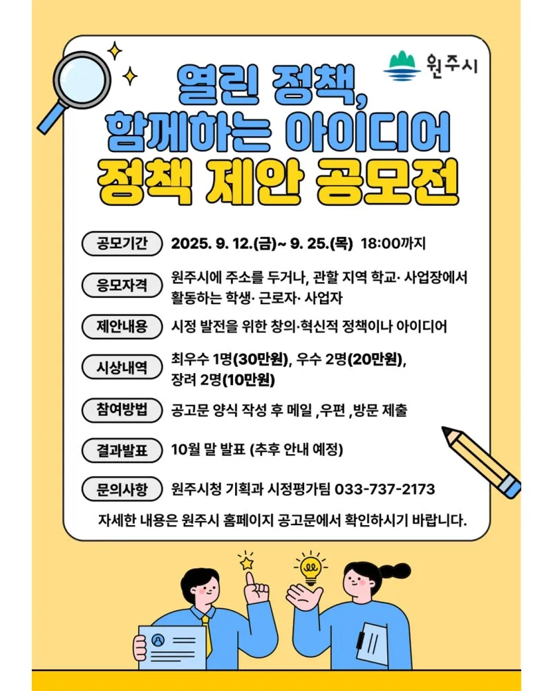 열린 정책, 함께하는 아이디어! - 원주시 정책 제안 공모전을 개최합니다.