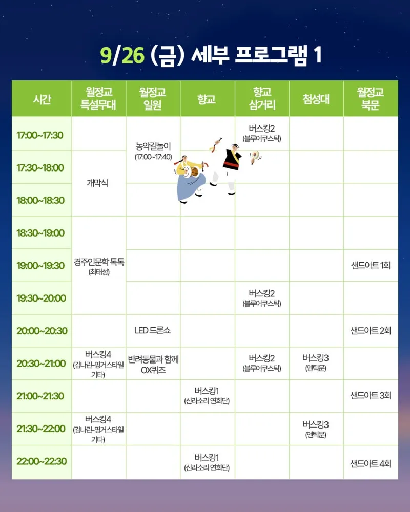 ※ 개막식 9. 26.(금) 18:00~18:30 / 월정교 앞 특설무대