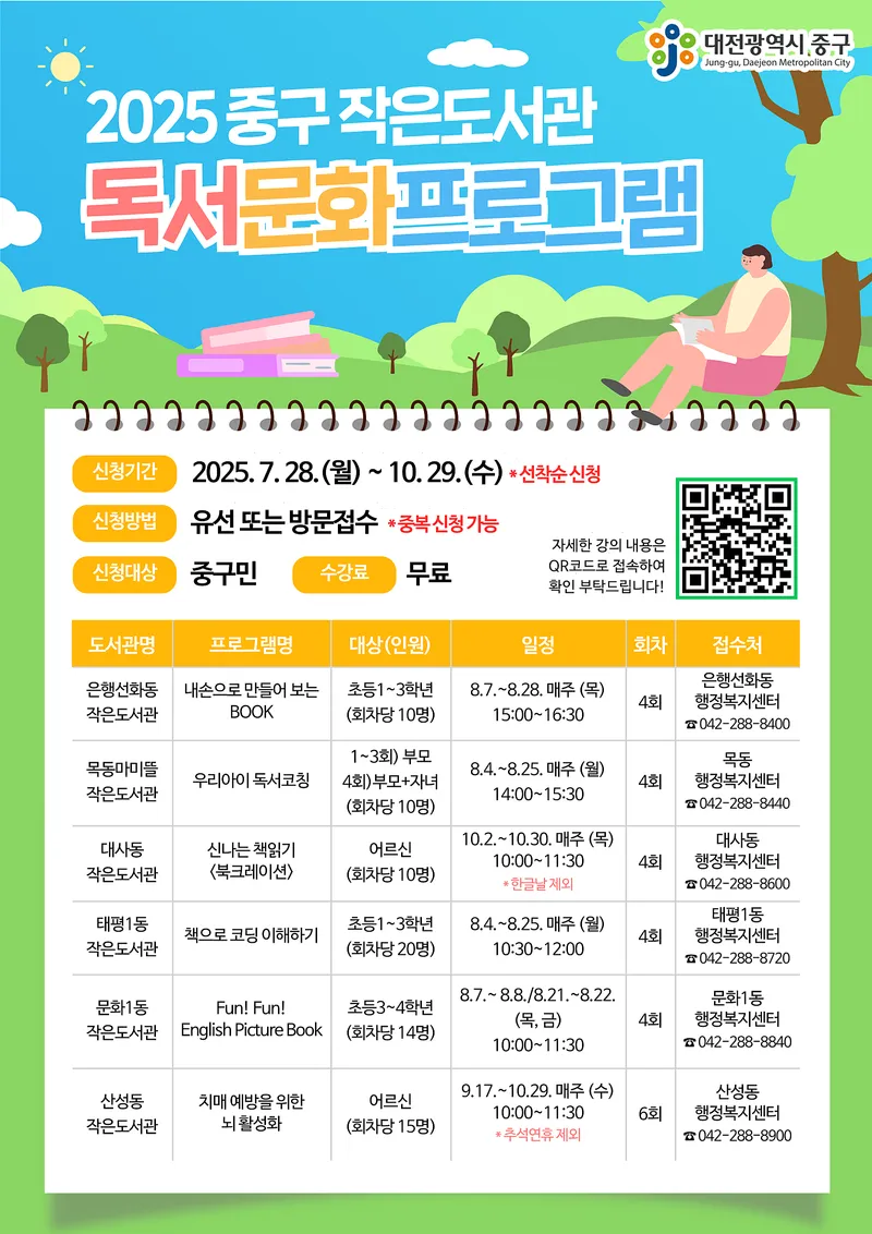 <2025 중구 작은도서관 독서문화프로그램>은 태평1동을 포함하여
