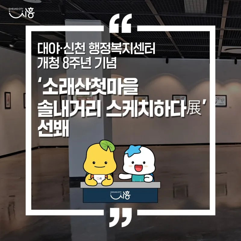 전국 1호 책임읍면동인 대야·신천 행정복지센터가 3월 31일부터 4월 28일까지 ABC행복학습타운 아람관 1층 어울림 갤러리에서 센터 개청 8주년을 기념하는 ‘소래산첫마을 솔내거리 스케치하다’ 전시회를 선보이고 있습니다.