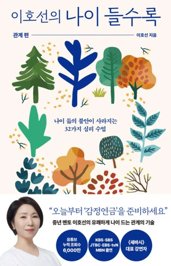 〈이혼숙려캠프〉의 ‘사이다 상담가’이자 대한민국 중노년의 대표 멘토인 이호선 교수는 “나이 들수록 모든 걸 줄여도 관계만큼은 줄이지 말아야 한다”며 인생 후반전의 행복을 책임질 ‘감정연금’, 탄탄한 인간관계 네트워크를 미리 준비해야 한다고 이야기합니다.