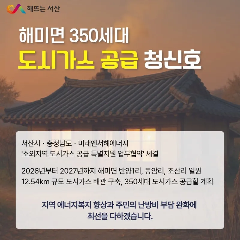 🔥 서산시, 해미면에 도시가스 공급한다!