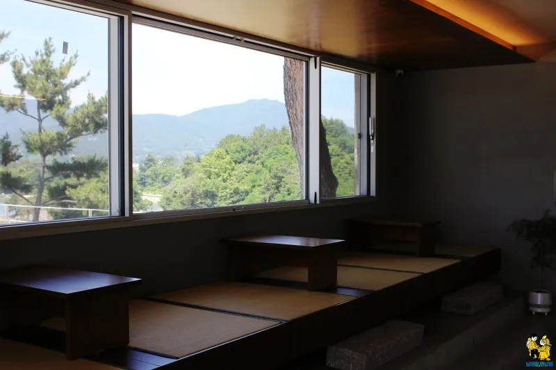 주변의 풍관을 함께 즐길 수 있는 티룸.