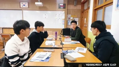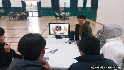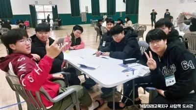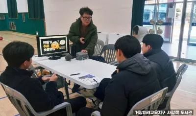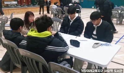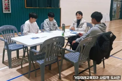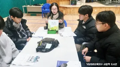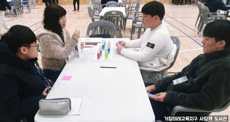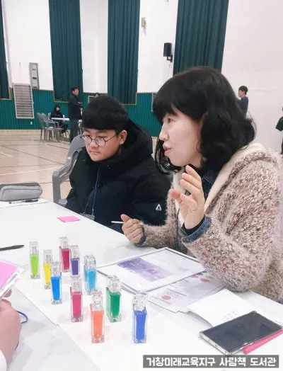 교육지원청과 지역사회의 협력을 통한 행복교육지구 기반 조성, 학교와 지역사회가 함께하는 행복한 학교 문화 조성, 학생들이 스스로 배우고 가꾸는 마을 학교 운영, 마을을 알고 마을을 배우며 마을을 위한 마을교육공동체 조성이란 과제를 추진 중인 거창 미래교육지구에서 올 하반기 중3 학생들을 대상으로 사람책 도서관을 운영하고 있어요.