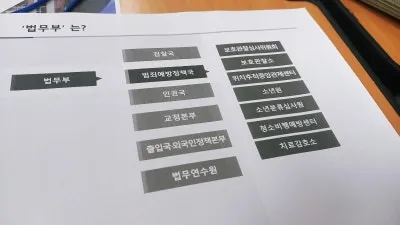 사람책 '보호직 공무원'께서는 준비하신 유인물을 보면 법무부의 조직도로 그 역할에 대한 이야기를 하시는 듯해요.