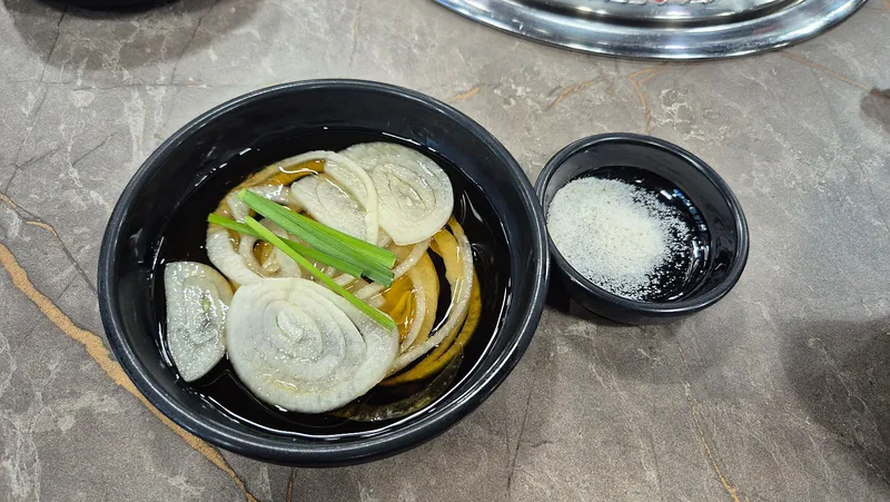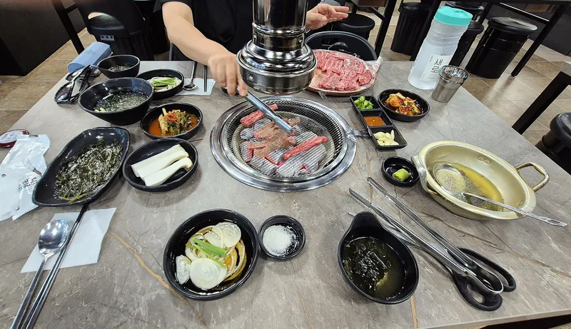 고기를 들고 자리에 앉자, 잠시 후 기본 반찬이 차려졌습니다. 한우가 들어간 미역국이 먼저 눈길을 끌었는데 깊고 깔끔한 국물 맛이 고기를 기다리는 입맛을 부드럽게 열어주었습니다.