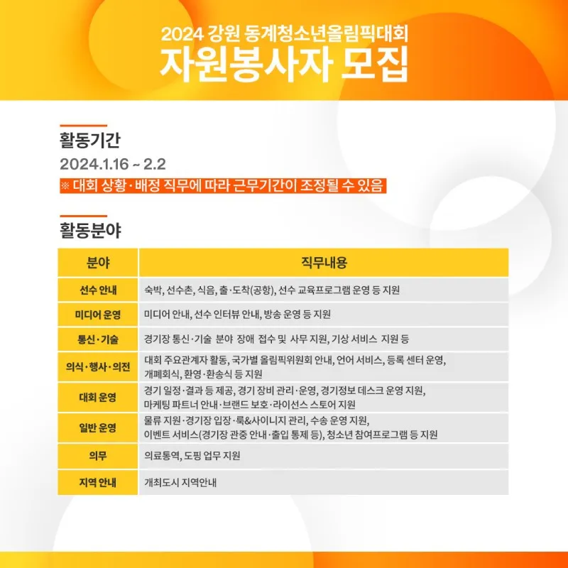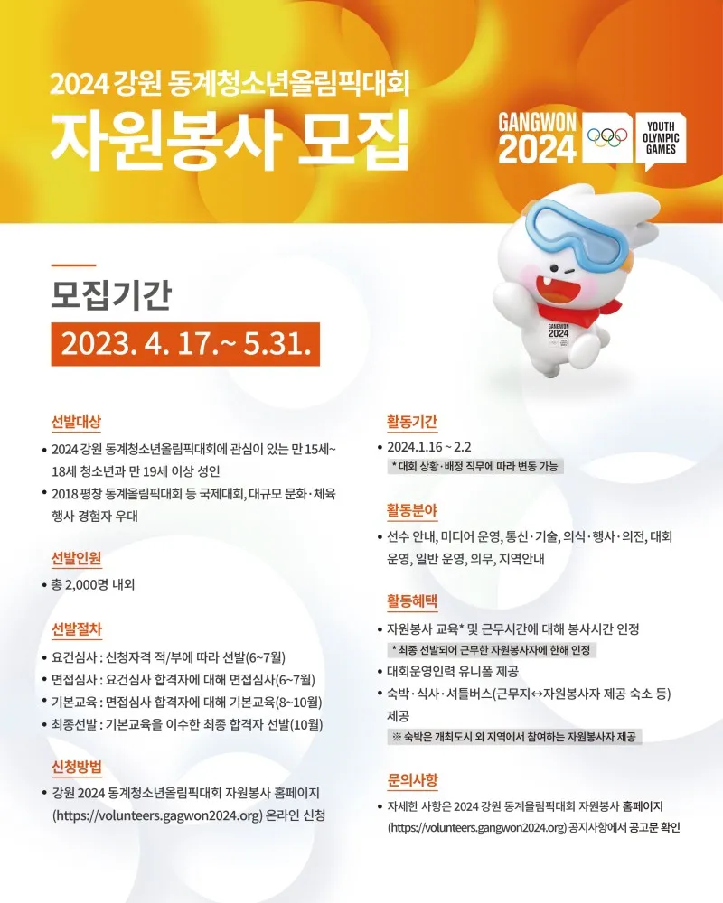 2024 강원 동계청소년올림픽대회 자원봉사자 모집