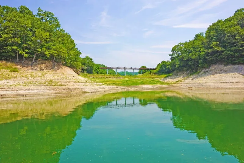 맑은 안동호 위를 걸으며 고즈넉한 풍경은