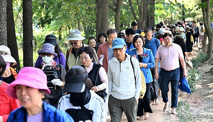 - 발벗고 건강 찾으러 나간다 ! - 맨발걷기 활성화로 만성질환까지 잡는다 ▶ 맨말걷기국민운동본부 MOU체결 / 주민기초교육 / 맨발걷기클럽 / 맨발산책로스탬프투어챌린지 / 맨발걷기데이 ▶ 북구 맨발걷기 클럽 5개소 120명 운영 ⇒ BMI / 혈당 / 우울증 수치 감소↓, 걷기실천율 증가↑ |