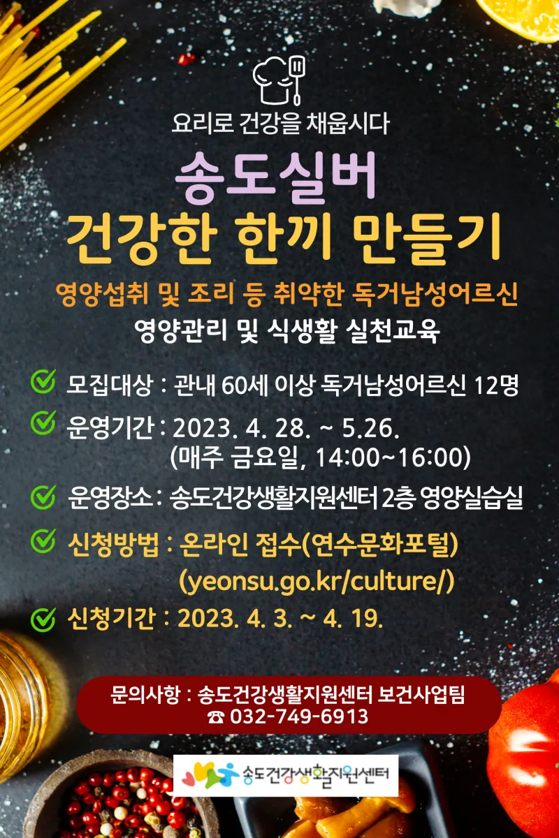 [연수 소식] '송도 실버 건강한 한 끼 만들기' 운영 안내