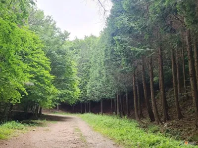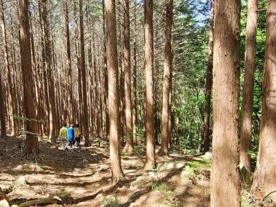 편백과 삼나무 숲을 지나며,