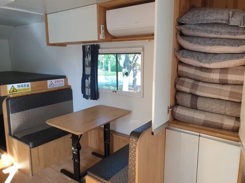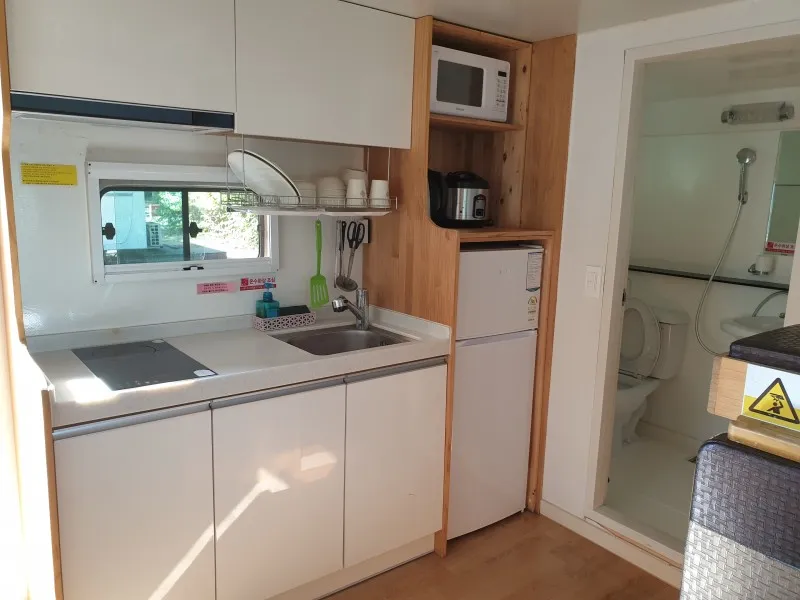 카라반 내부에는 TV, 인덕션, 전자레인지, 냉장고, 전기밥솥, 냉/온풍기 등