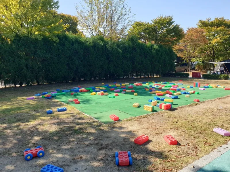 야외에서 블록을 쌓고 놀 수 있는 좋은 놀이공간이에요.
