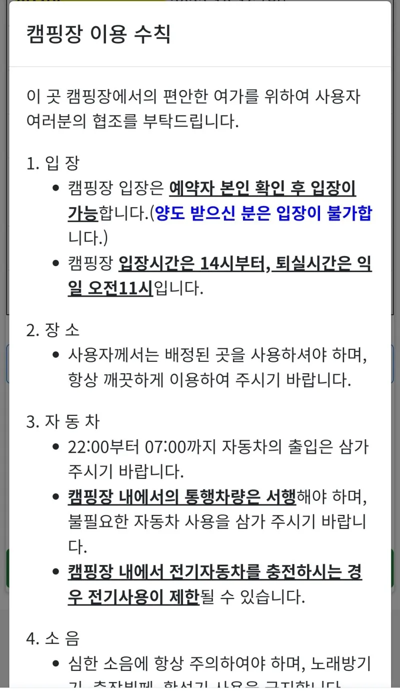 캠핑장 이용수칙도 결제 전 확인해야 합니다~