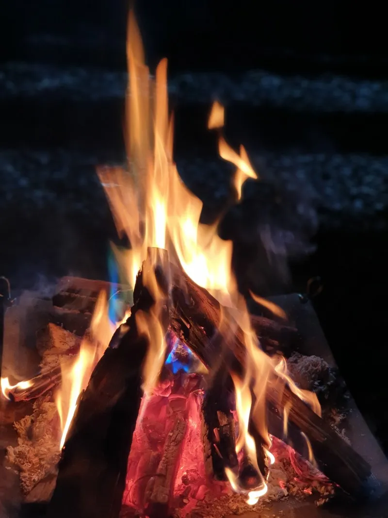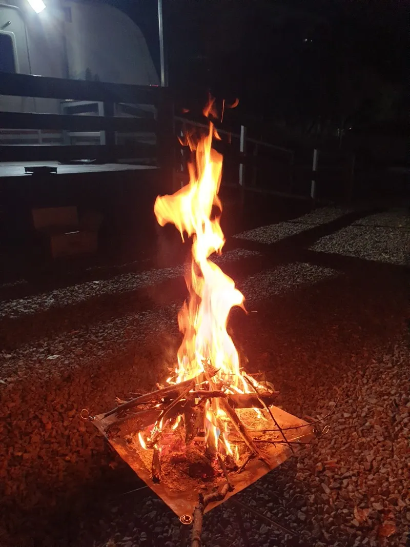 해가 지고 저녁식사를 준비하면서 화로대와 장작으로 불멍을 시작했어요!