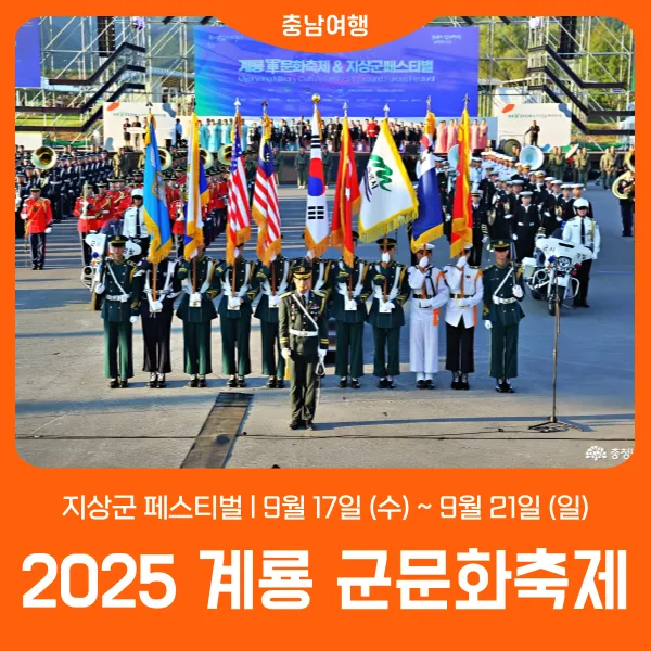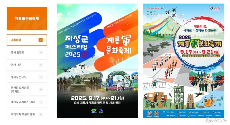 2025년 계룡군문화 축제와 지상군페스티벌 축제 소식을 알립니다.