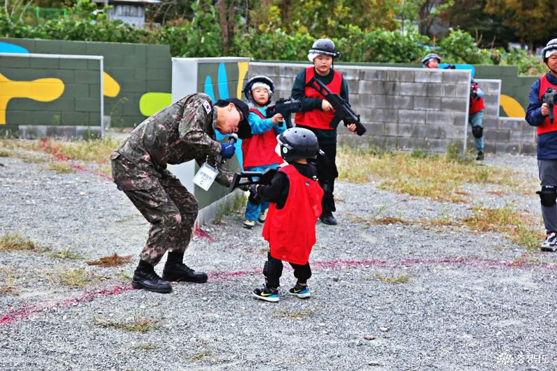 2024년 서바이벌 체험장의 어린 체험객들이 즐기는 전투체험 현장입니다.