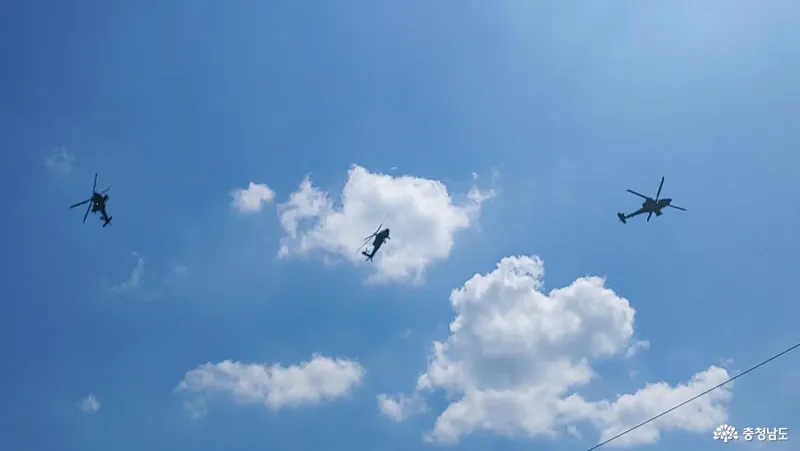 약 30분정도 계룡대 하늘을 비행하며 행사준비를 하는 아파치 헬리콥터 비행을 관람하였습니다.