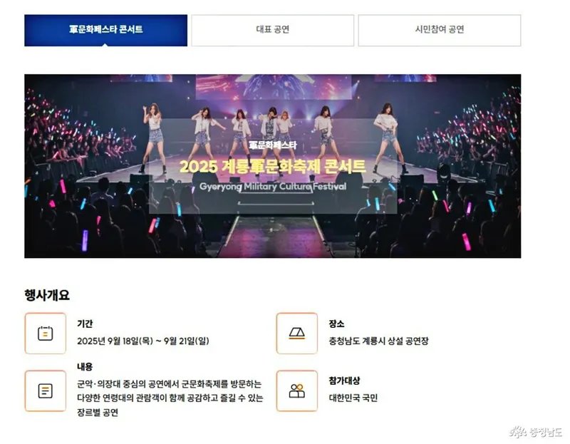 2025 지상군페스티벌 - 계룡 군문화축제가 국방수도 계룡시에 개최됩니다.(자료 - 계룡시 홈페이지 캡쳐)