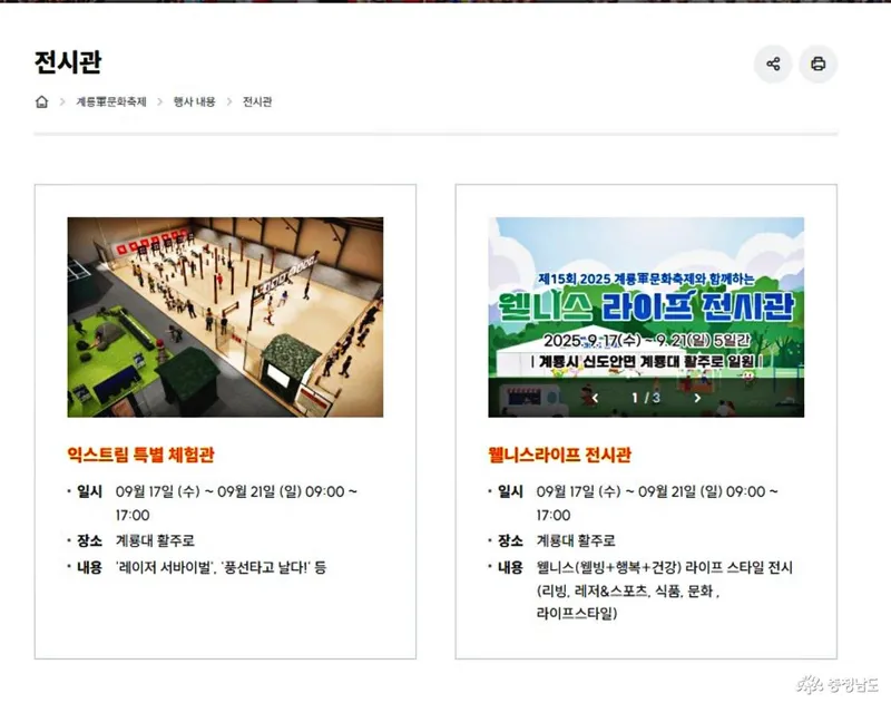익스트림 체험관과 웰니스라이프 전시관인데 어떤 전시관인지 기대가 큽니다. (자료 - 계룡시 홈페이지 캡쳐)