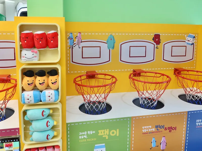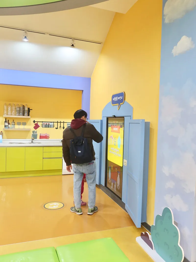 체험 코너, 알록달록한 전시물 앞에서