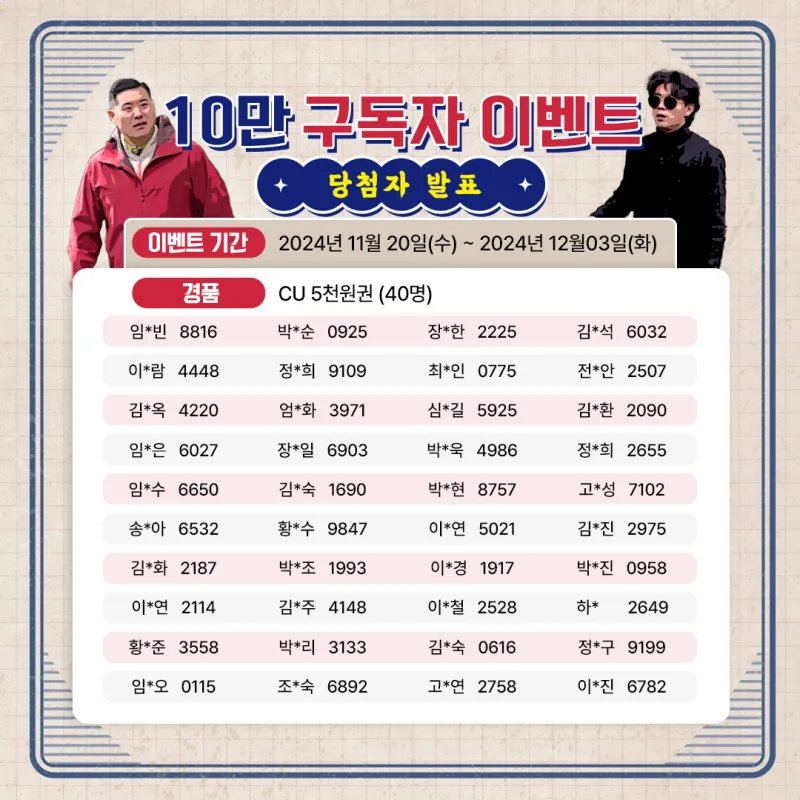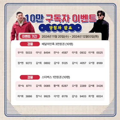 + 10만 구독자 이벤트 당첨자 발표까지!!
