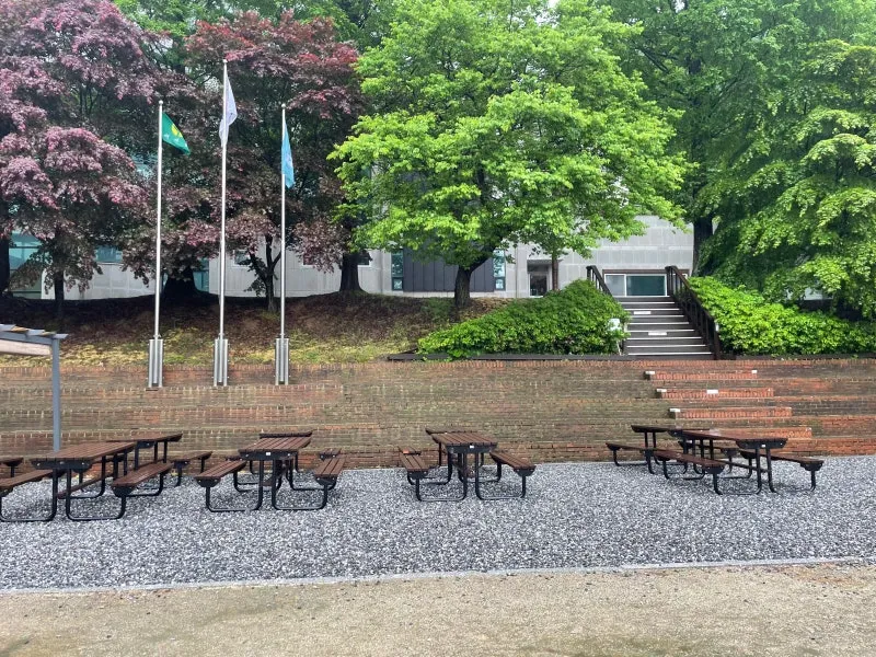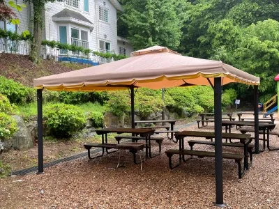 운동장과 각 방갈로 앞, 그리고 중간 공터에는 고기를 구워 먹을 수 있는 바비큐 시설이 있어요. 특히 올해부터는 바비큐 공간에 천막을 설치해서 비가 와도 편하게 즐길 수 있도록 업그레이드가 되었더라고요. 이번 여행에서 비가 와 고기를 어떻게 구울지 걱정이 되었는데, 다행히 준비한 바비큐를 할 수 있었습니다. 물론 식사 후 분리수거를 잘 해야겠지요.