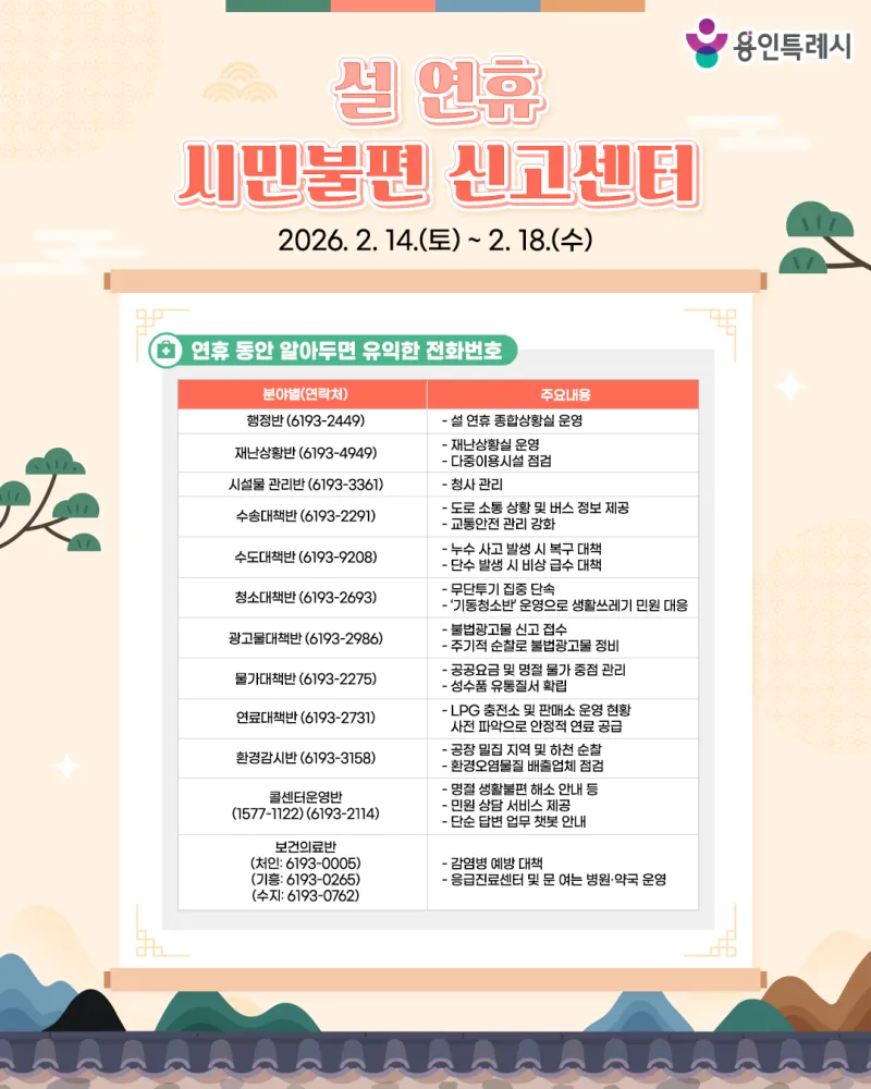 [용인소식] 2026년 용인시 설 연휴 종합안내