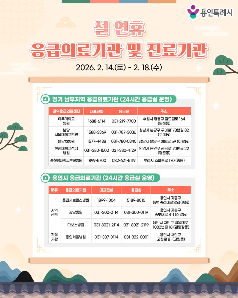 ▼ 용인시청 설 연휴 종합안내 바로가기 ▼