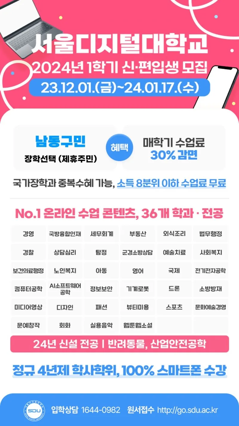 남동구민 대상 서울디지털대학교 신·편입생 모집