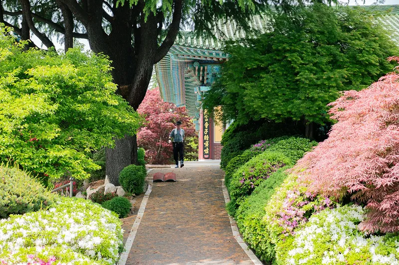마치 깊은 산속에 온 것처럼 조용했고, 아름다운 나무와 꽃들이 반겨주니 마음도 편안해졌습니다.
