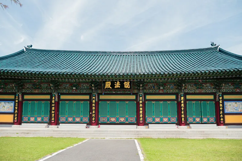 범종각을 지나 위쪽으로 올라가면 중앙에 위치한 대웅전과 설법전의 모습을 볼 수 있습니다. 대웅전은 일반인도 자유롭게 들어가 볼 수 있지만, 대웅전 왼쪽에는 스님들이 참선과 정진을 하는 공간이 있어 방문객들은 들어가실 수 없다는 점 유의해 주세요.