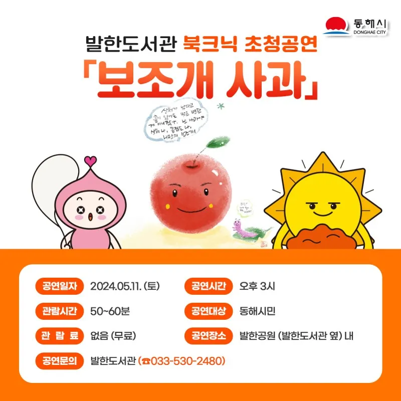 발한도서관 북크닉 초청공연, 낭독음악극 "보조개 사과🍎" 안내