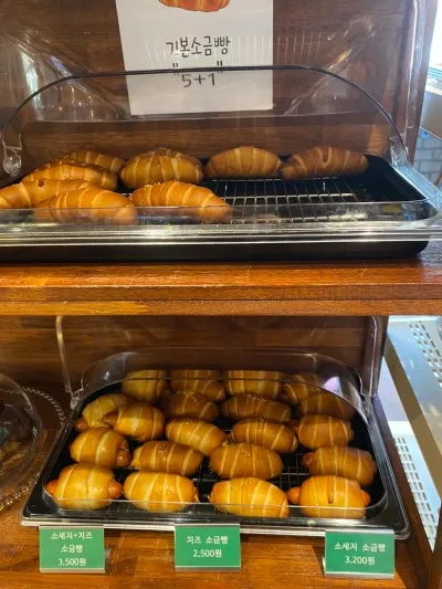 소시지 치즈 소금빵부터 치즈 소금빵, 소시지 소금빵까지 있습니다.
